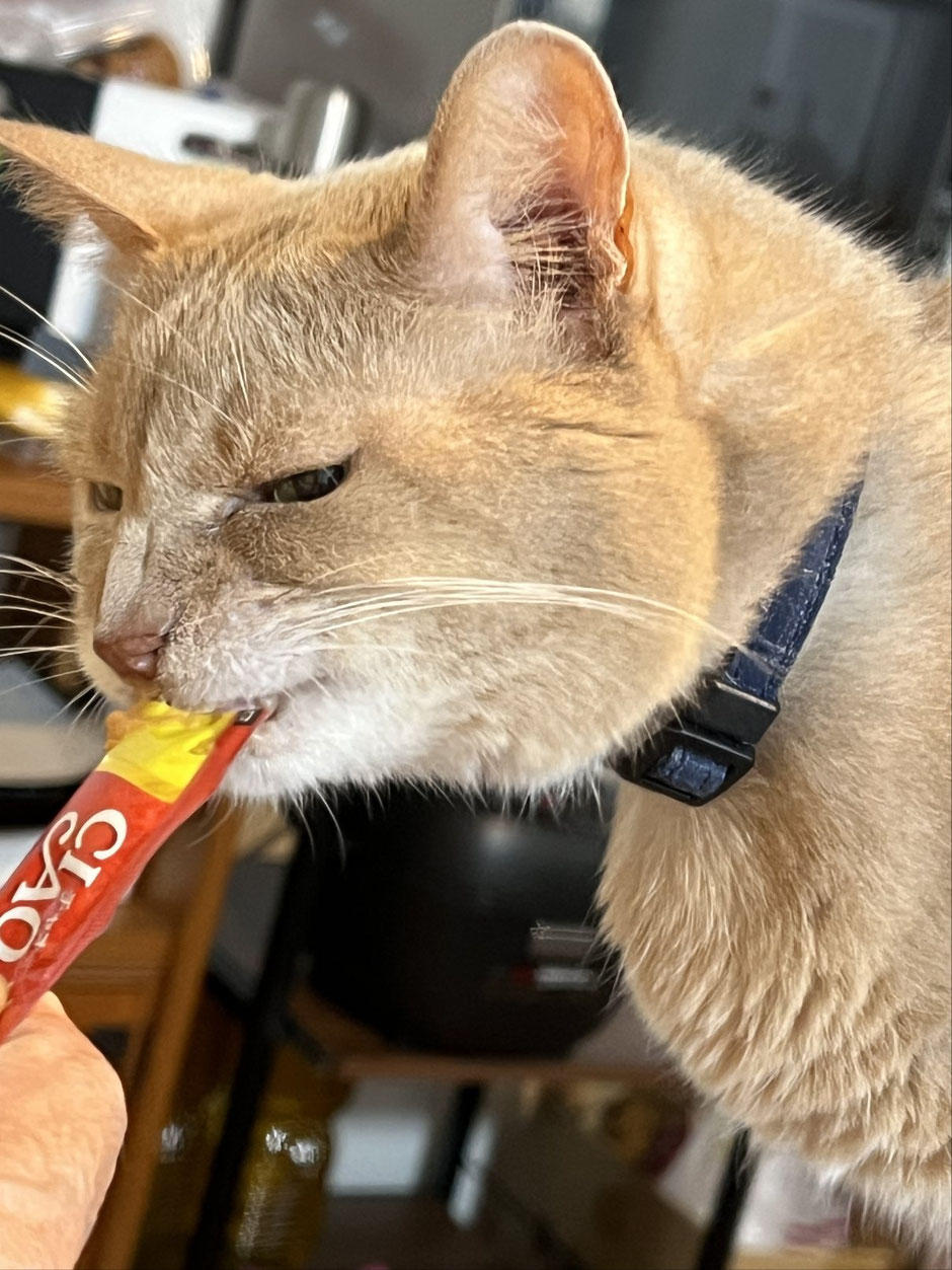 もちろん、そんな可愛いミーちゃんともっと仲良くなるために、「もっと仲良くしてね!」と下心ありありのチュールタイムは欠かせません(笑)。