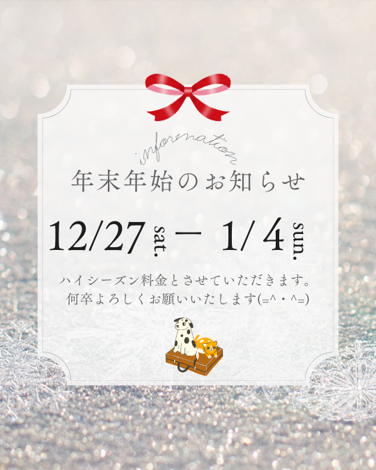 年末年始のペットシッティングにつきまして、ご案内させていただきます。