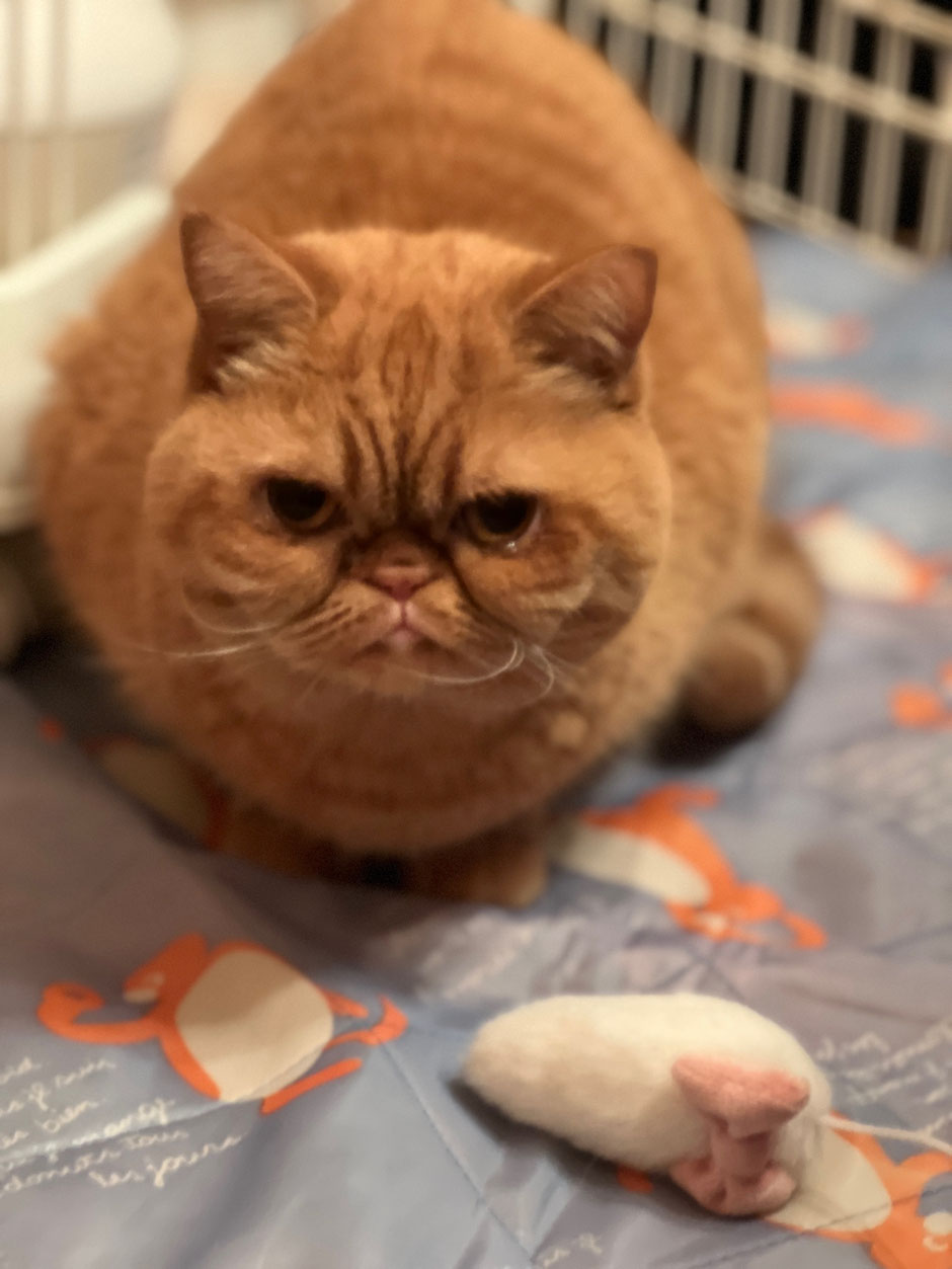 この子は、オレンジのシマシマ模様と、触り心地抜群のふわふわな毛並みがチャームポイント。飼い主さんには怒られるかもしれないけど…ごめんね、クシャカワブサカワで最高に可愛いです!