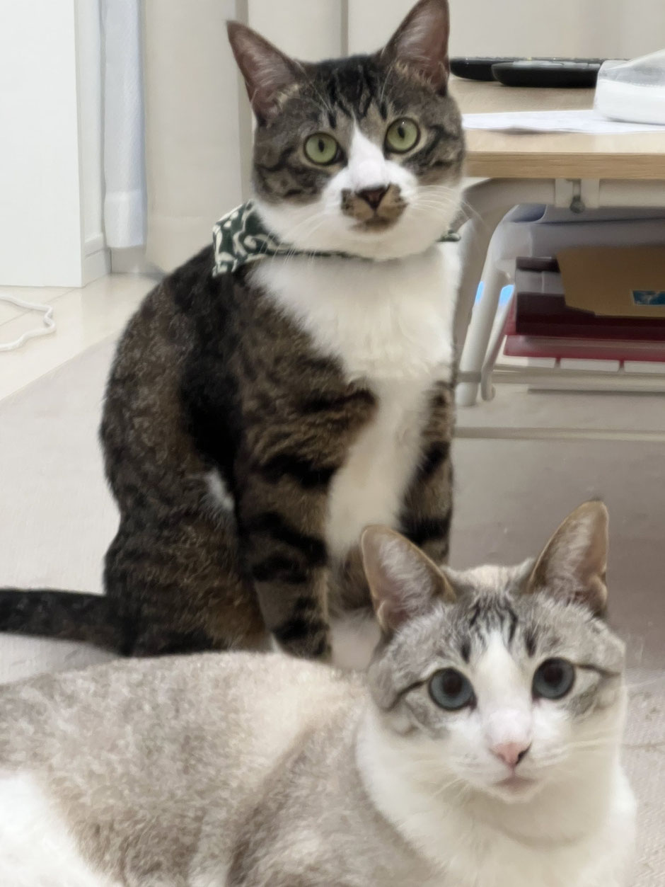 療養食のケージお留守番を健気に頑張ったしおん君、おやつへの気合いが誰より熱いつむぎ君。末っ子甘えん坊ギャップ萌えのゆきちゃん。やっぱり3人揃うと賑やかで最高に可愛いな❤!